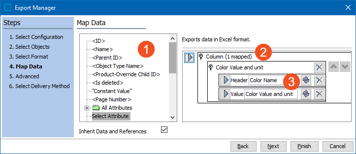 The Map Data step is displayed in the Export Manager wizard based on the selected format.