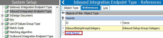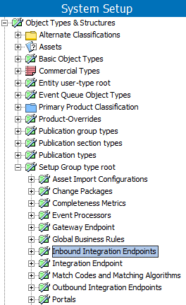 A setup group is created as a node in the System Setup hierarchy. Inbound integration endpoints can now be created under this new node.