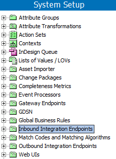 Review your System Setup tab to determine if one or more inbound integration endpoint nodes already exist. The name of the node on your system is not required to match the one in the image below.