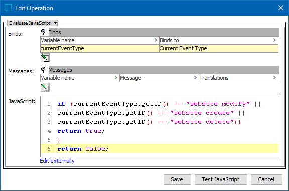 if (currentEventType.getID() == "website modify" || currentEventType.getID() == "website create" || currentEventType.getID() == "website delete"){ return true; } return false;