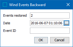 When you have selected a date and time, the Events restored field shows the number of events that will be restored.
