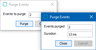 - The Purge Events dialog, the number of read events that you can delete from the system is displayed.