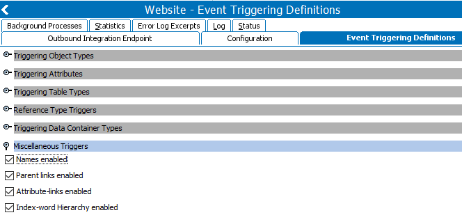 - Index-word hierarchy enabled: Triggers an event when an index word changes, or an index hierarchy link is added on a triggering object type. Common setup is to use indexes, and this option for print output.