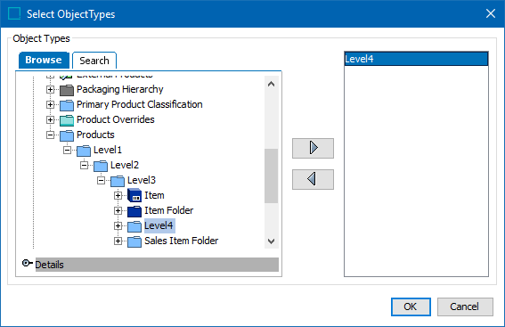 - While the most commonly used object types are displayed in the browsing area, use Search to find other object types.