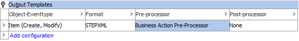 - On the Configuration tab, open the Output Templates section and locate the output template that requires the business action.