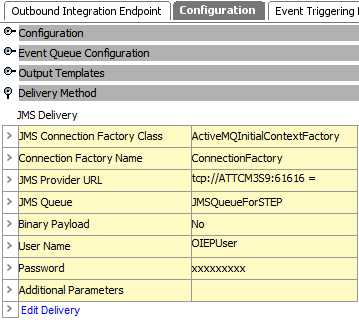 On the Configuration tab, in the Delivery Method area, click Edit Delivery.