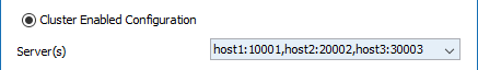 Click the Cluster Enabled Configuration radio button to display the Server(s) dropdown entries for the dynamic MongoDB.Server.Configuration.[n] property.