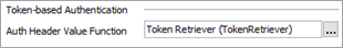 With the token-based authentication option, the responsibility for producing any required request headers is delegated to a business function. The business function must be configured to not expect any input and must produce a Map<String, String>. Each map entry is a header that will be sent with the request to the service.