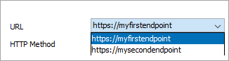 Configure the URL dropdown parameter using the RestDirectDeliveryURL property. If necessary, use a comma to separate multiple URLs.
