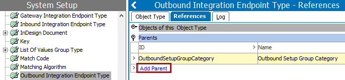 A setup group is created as a node in the System Setup hierarchy. Outbound integration endpoints can now be created under this new node.