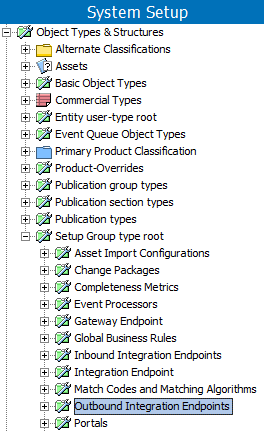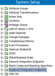 Review your System Setup tab to determine if one or more outbound integration endpoint nodes already exist. The name of the node on your system is not required to match the one in the image below.