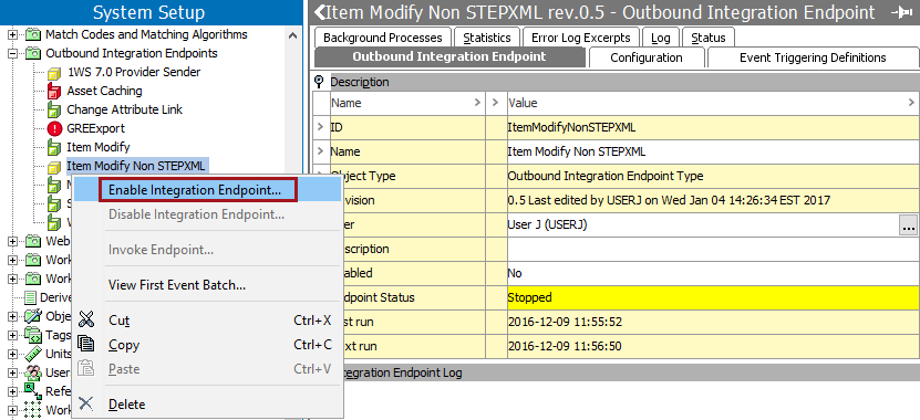 ), right-click, and select Enable Integration Endpoint from the menu.