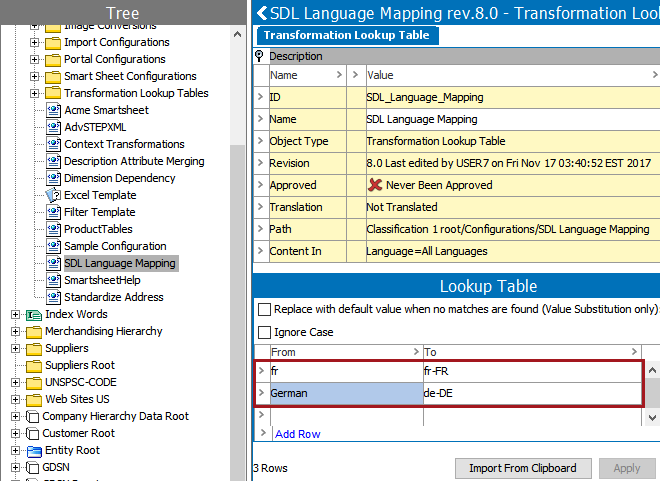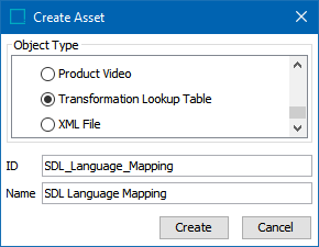 Note: When the language and country codes are not in the correct format in the IDs of the language dimension points, a Transformation Lookup Table is required.