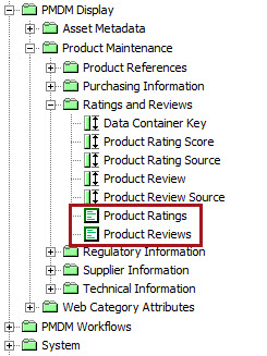 To illustrate the different ways data containers and composites display in their respective systems (STEP and PDX), this section will outline, via screenshots, how two sample data containers, 'Product Ratings' and 'Product Reviews', will display. In the screenshot below are the two sample data containers, both of which are delivered with Accelerator for Retail packages.