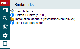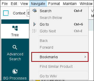 The Bookmarks tab allows users to set standard navigation bookmarks and search bookmarks, and both allow users to easily access objects without having to search or navigate the Tree.