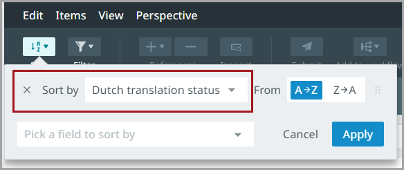 The option for administrators to add target language translation statuses for Browse and Tasks perspectives can be found in the Configuration tool. For Browse and Tasks perspectives in custom work areas, users can add or remove target language translation statuses using the Customize option in the toolbar.
