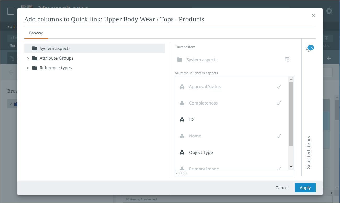 Completeness scores for products (based on the default metric) can also be viewed and accessed in the list view by adding the Completeness option via the Customize toolbar action.