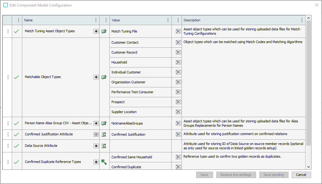 - Click the Edit link shown in the image above (or the Edit (pending changes) link) to display the Edit Component Model Configuration dialog.