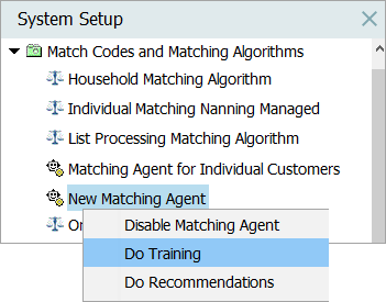 To manually perform the training and get new up-to-date merge / reject recommendations, right-click the matching agent and select 'Do Training.'