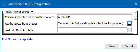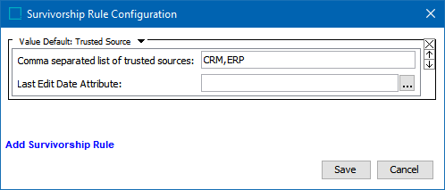 Optionally, click the ellipsis button () and select the attribute that holds the value to be used as the last edit date when determining the most recent source record to promote to the golden record.