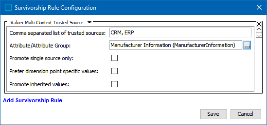 Promote inherited values - When checked, inherited values are written to the golden record for the selected attribute / attribute group only if the golden record object type is valid.