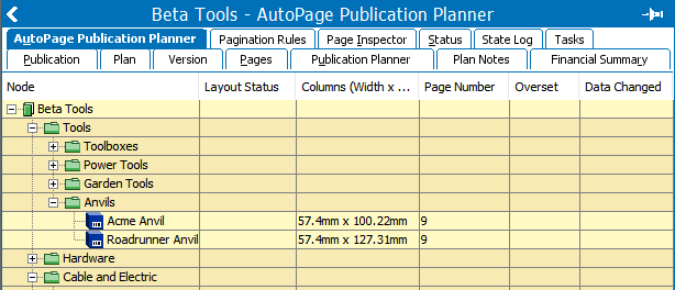 Use the AutoPage Publication Planner to plan page content and view the status of paginated pages. For full details, refer to the AutoPage Publication Planner topic.
