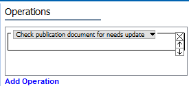 Documents can be checked for updates by running the bulk update operation 'Check publication document for needs update.' This operation is accessed in step 2 of the bulk update wizard ('Operations').