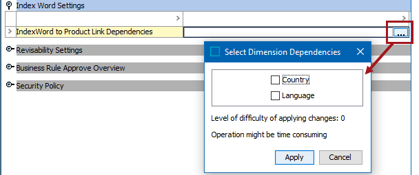 Making the links between products and index words dimension dependent can be useful for situations where not all products are sold in all countries. Because the Index Word product-to-classification link type (ID = stibo.IndexWord) is a hidden object in STEP (refer to the 'Note on the Index Word Product to Classification Link Type' subsection below for more information), dimension dependency cannot be set on index word link types by the same method used for other product-to-classification link types. Instead, the dimension dependency must be set in System Settings under the 'Index Word Settings' flipper. For more information, refer to the Index Word Settings section of the System Setup documentation.