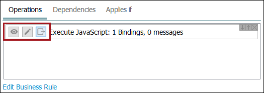 Previously, the 'Edit Operation' action could only be accessed via the Business Rule / Business Function Editor. Additionally, JavaScript operations no longer display code in the operations list, and now only display the number of bindings and messages instead.