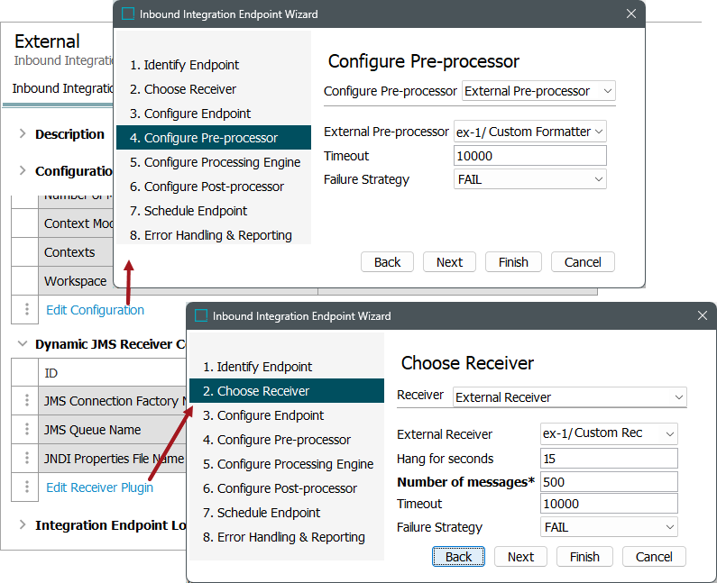 Inbound integration endpoints - refer to the IIEP - Configure Pre-processor topic and the External Receiver topic, both in the Data Exchange documentation.
