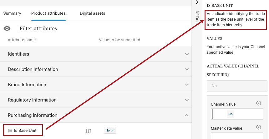 When the attribute name is clicked, the ‘'Details' panel will display on the right-hand side of the screen. The configured help text will display in this panel.