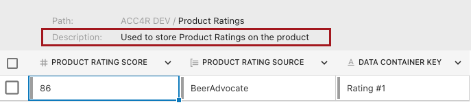 On a data container, the configured help text will display above the columns to the right of the field name, ‘Description‘, as shown in the screenshot below.