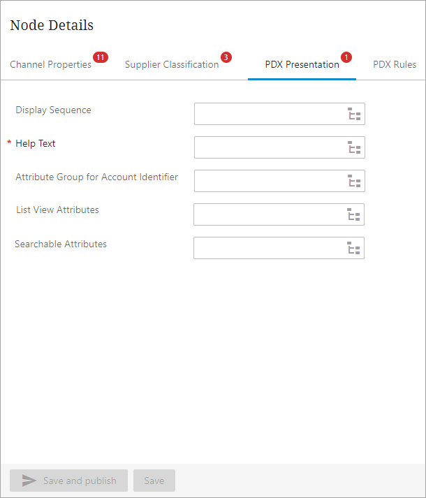 Display Sequence: Users can configure a metadata attribute for Attributes, data containers and Attribute groups. This metadata attribute serves to determine the order in which attribute groups, attributes within an attribute group, and data container columns are presented within PDX UI.