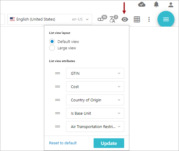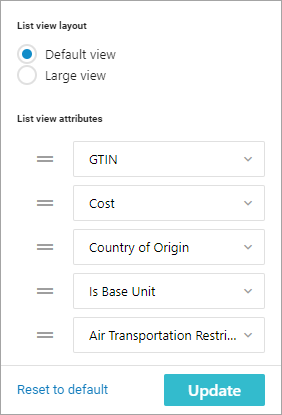 Additionally, users, including suppliers, can return to the default setup from STEP by clicking 'Reset to default'. It is not possible to control the ordering of the default List View attributes from STEP.