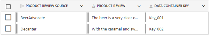 For example, shown in the screenshot below are two data containers of the type ‘Product Review.' They are linked to a product. One has a 'Data Container Key' of '001' and the other '002.'