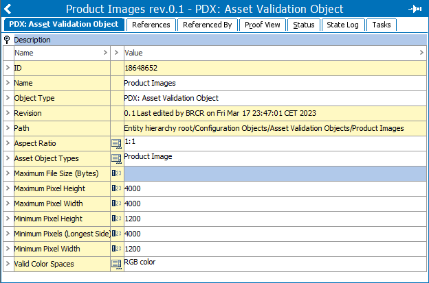 Asset validation objects are created to define specific asset validation rules on specific assets in PDX. The validations display like this on the asset validation object in STEP: