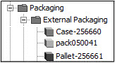 Packaging objects (‘Pallet', ‘Case', ‘Pack') are created as separate objects directly below a dedicated ‘PackagingRoot' node in STEP.