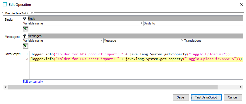Note: This functionality is managed by a configuration property that is not available in the Self-Service UI. Contact Stibo Systems Support for assistance. This folder needs to be the same as the configuration set in the 'The Standalone.JVMArgs' property of the Tagglo component, which is located under the 'Tagglo.UploadDir.ASSET' section.