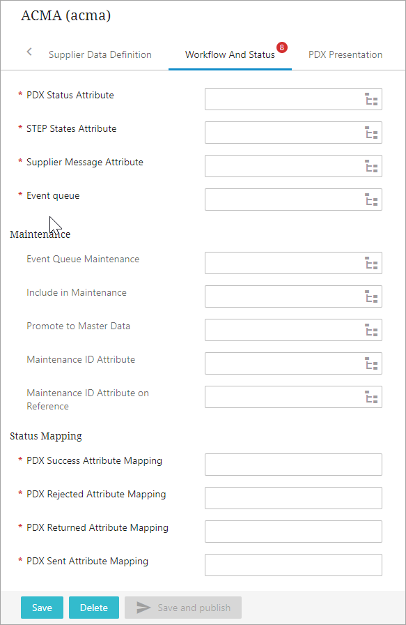 The parameters available within this canvas are mainly relevant to the mapping of values of the PDX Status Attribute and the status in PDX.