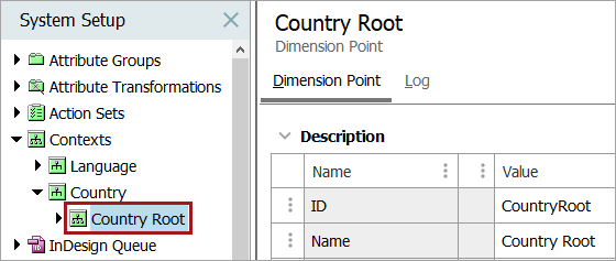 1. On the System Setup tab, select the relevant dimension, in this example, Country.