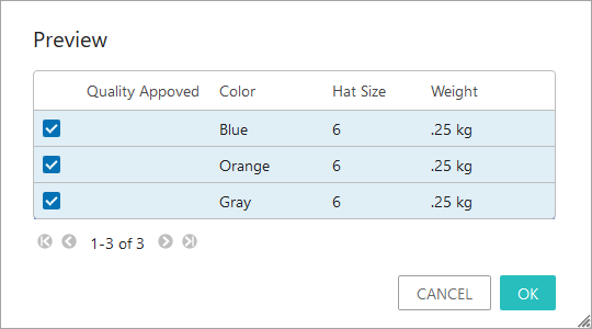 When checked, clicking the 'Create Variants Action' button, selecting variant values, and clicking OK opens a Preview dialog with all new variants to be created. The user can click OK to create the items being previewed, or Cancel to return to the create variants dialog.