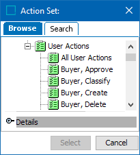 Select the permitted Action Sets for the Group. Remember to create Action Sets that are very specific to the privileges that you want the User Group to have. For more information about Action Sets, refer to Action Sets.