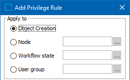 When configuring user privileges, the Object Creation option allows an administrator to give specified access to a user who also has privileges to create new objects in STEP. More information about this option can be found in Object Creation Privileges.