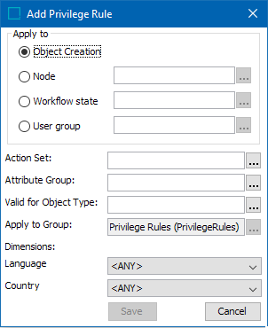 It is worth noting that these object creation privileges do not apply to any new setup type nodes. Also, if an administrator selects to apply the object creation permissions to an unsupported object type, such as eCatalogs, publication sections, pages, attributes, etc., there will not be any kind of warning message.