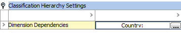 This option allows for folders in classification structures to be dimension-dependent. This is different than the dimension dependencies that are set on the object type. Selecting dimension dependencies will determine whether classification structure will or will not be shown in specific languages or countries. In the example below, the dimension dependency has been set for country by clicking on the ellipsis [...] button and selecting Country.