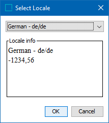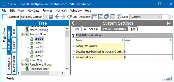 - In Locale for values, click field to open a locale selector dialog. In this example a German - de/de locale is selected for User 01.