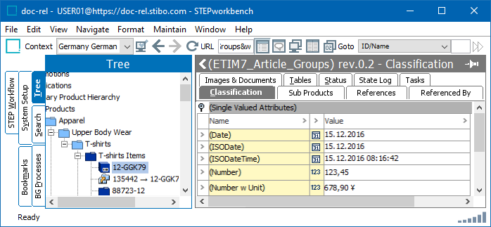 In this example User01 is logged on the workbench. The User is setup to use a German - de/de locale for numbers. A comma will appear in single and multi valued attributes / LOVs. User 01 will only be allowed to use a comma as a decimal separator for numbers. When User 01 saves a number into the database, the English - US locale will still be used to save the number. So if User01 enters a number: 2343,76 into a value field, the value will be saved in the database as 2346.76.
