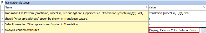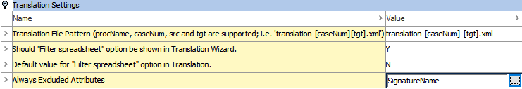 Language-dependent attributes and attribute groups selected in the 'Always Excluded Attributes' parameter will always be excluded from translation requests, i.e., the values set for these attributes and attribute groups will be ignored when creating a translation export, even if present on objects being translated.
