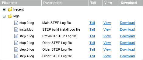 The STEP log files are used primarily for system monitoring and troubleshooting and contain a large amount and variety of information, including stack trace information for errors and exceptions not handled by the GUI. The zero log (step.0.log) is the current log, with older log files indicated by incrementing integers.