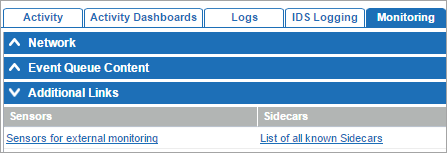 The Monitoring tab is used to monitor servers and events and is divided into three sections, each of which is described below.